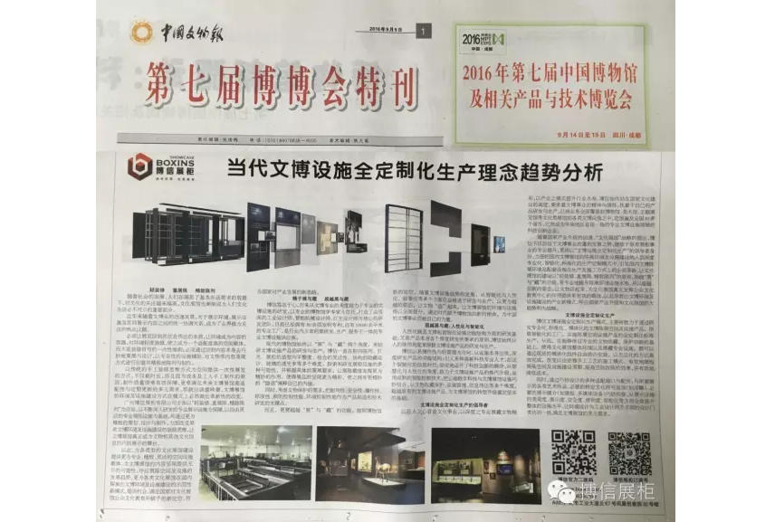 圖(tú)為中國(guó)文物報社第七(qī)屆博博會特刊:博信提出《當代(dài)文博設施全(quán)定製化生產(chǎn)理念趨勢分析》